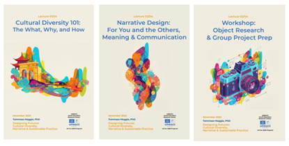 Il corso enfatizza il design come strumento di empatia, inclusione e resilienza, affrontando sfide come l'uguaglianza di genere e l'azione per il clima, ed è in linea con gli Obiettivi di sviluppo sostenibile (SDG) delle Nazioni Unite. È suddiviso in tre parti: